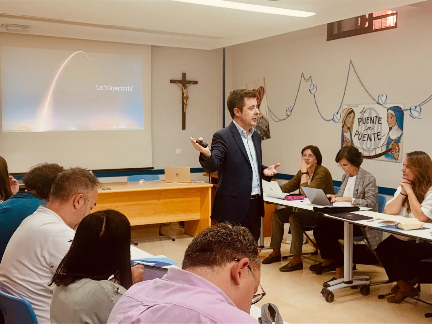 El encuentro continuó con dinámicas de trabajo en equipo orientadas a compartir, fortalecer y establecer criterios comunes para avanzar de manera conjunta. En la jornada del 24 de octubre, los participantes reflexionaron sobre el tema “Directivos con propósito: Pensamos nuestro centro”, abordando cuestiones como los irrenunciables de cada colegio, las líneas de acción marcadas por el Capítulo y los proyectos de dirección.