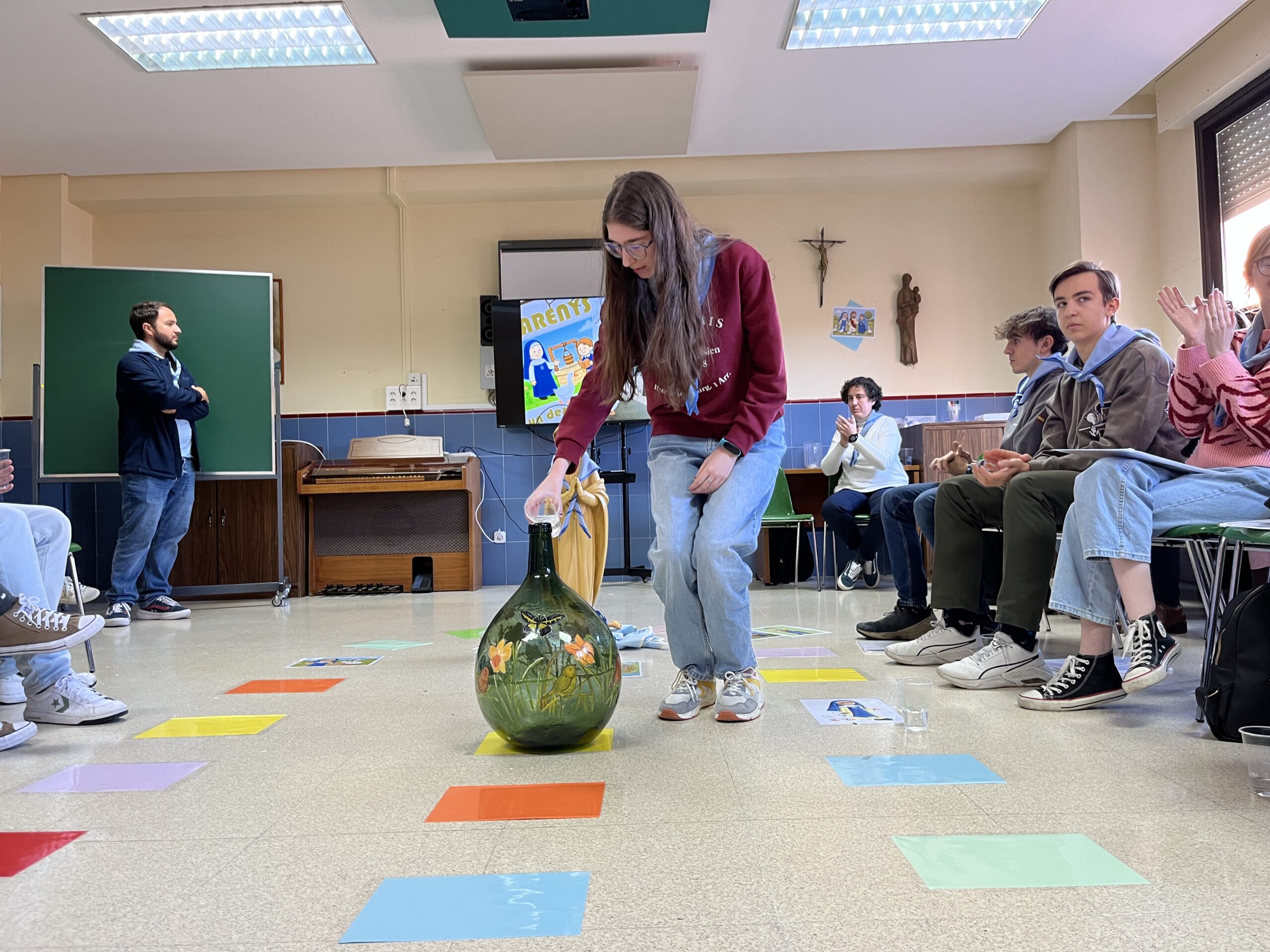 En cada una de estas paradas, los monitores participaron de diversas dinámicas. De este modo, a la vez que enriquecían su conocimiento de la familia concepcionista, también se convertían en un valioso recurso que poder utilizar con los miembros más pequeños de sus grupos allí donde estén. Cómo conocerse mejor, el significado de los símbolos, la importancia de apoyarse y conocerse unos a otros, cómo superar dificultades… Sin olvidar también los ratitos de descanso, como la posada o el pozo, necesarios en cualquier encuentro.