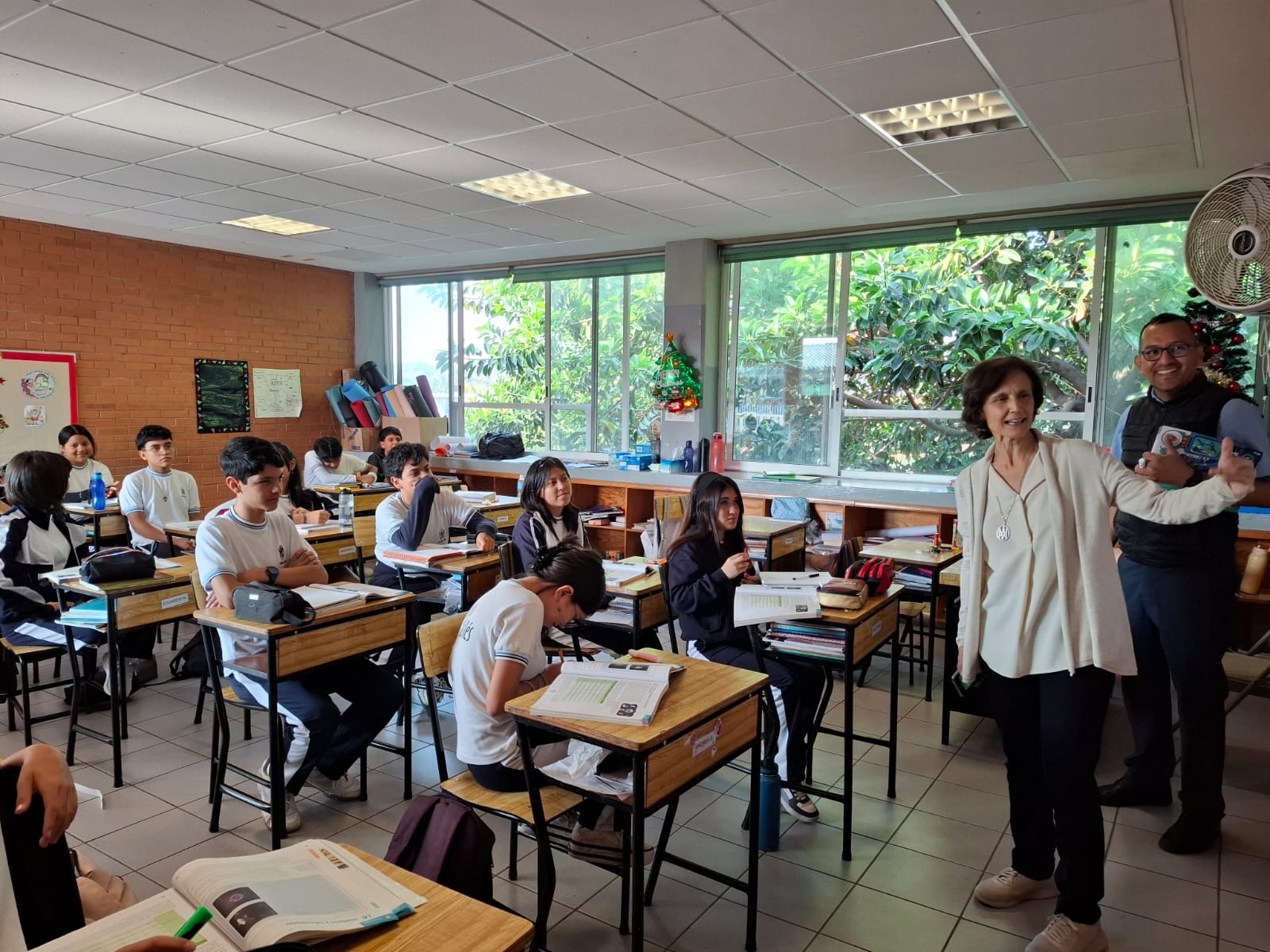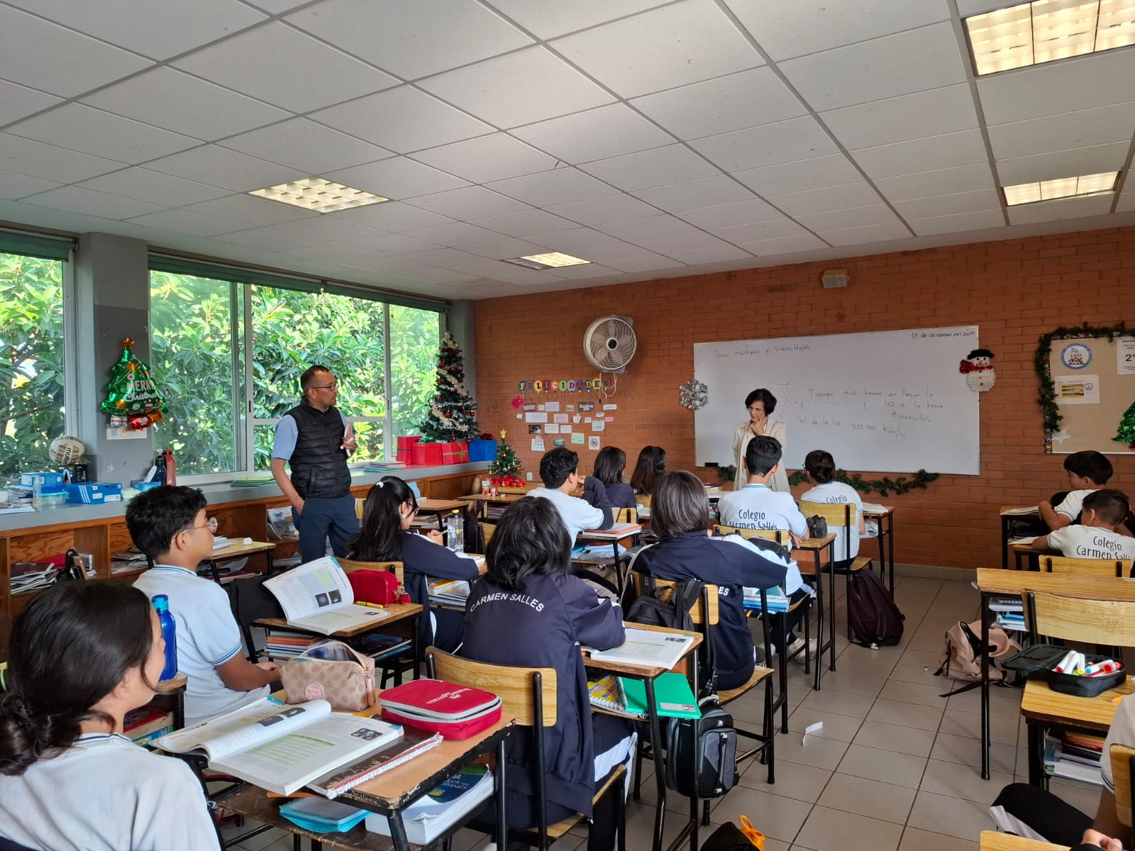 M. Belén visited all the classes, showing interest in the students' work and their projects. He was able to verify the good educational level, the high command of English by the students from the lower to the older levels, with whom he was also able to have interesting conversations in English. He would like to congratulate the teaching staff and the management team, with whom he also met, for the excellent work of comprehensive education that they are carrying out through personalization and for the excellent educational level.