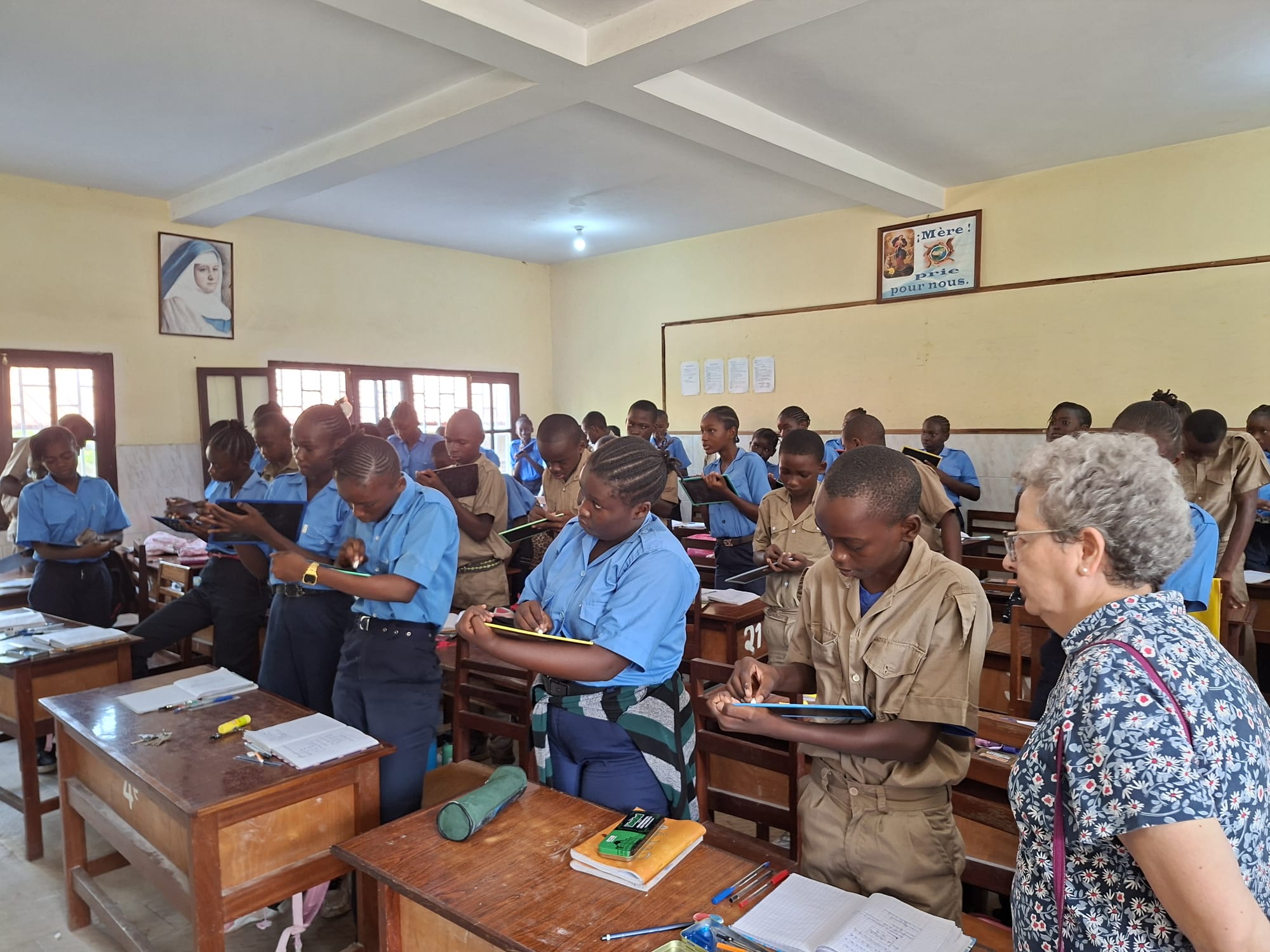 Este mes de febrero M. Belén Gómez de Castro, Superiora general, finalizó su visita a África en la República del Congo. Allí llegó el pasado 3 de febrero cruzando el Río Congo desde RDC. En Brazzaville fue cariñosamente atendida por toda la comunidad, visitó el colegio María Inmaculada que tiene alumnos de infantil a secundaria y pudo entrevistarse con padres, alumnos, profesores y miembros del Movimiento Laico.