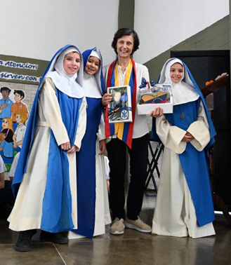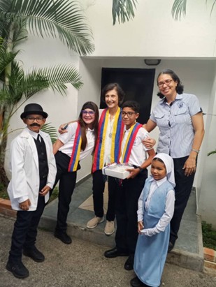 El día 13 por la mañana recibimos a M. Belén en el colegio de Maracay con una canción de bienvenida mientras que era acompañada por los niños vestidos de los Santos Venezolanos. La recibimos con palabras de alegría por parte de M. Auniuska Pérez y de la profesora Danis Amaya, directora del colegio. Se comenzó el encuentro con la oración de la mañana y lectura del Evangelio por parte de la maestra Greicy. Luego todos pudieron disfrutar de la escenificación de la llegada de las primeras concepcionistas a Venezuela, de lo cual han pasado ya 68 años. Seguidamente se realizó otra representación sobre las concepcionistas encargadas de fundar el colegio La Concepción de Maracay, el cual ya lleva 64 años en funcionamiento.