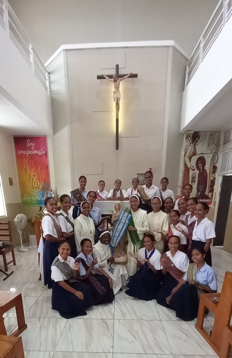 Le jour de l'Immaculée Conception, nous avons élevé nos prières pour demander la protection et l'intercession de Marie sur tous les membres de la Famille Conceptionniste, afin qu'ils restent fermes dans leur mission. Que, tout comme l'Immaculée Conception a été une source d'inspiration pour sainte Carmen Sallés dans la création d'un modèle d'éducation évangélisatrice, elle nous guide et nous inspire pour faire fleurir toujours plus ce modèle. Je vous salue Marie !